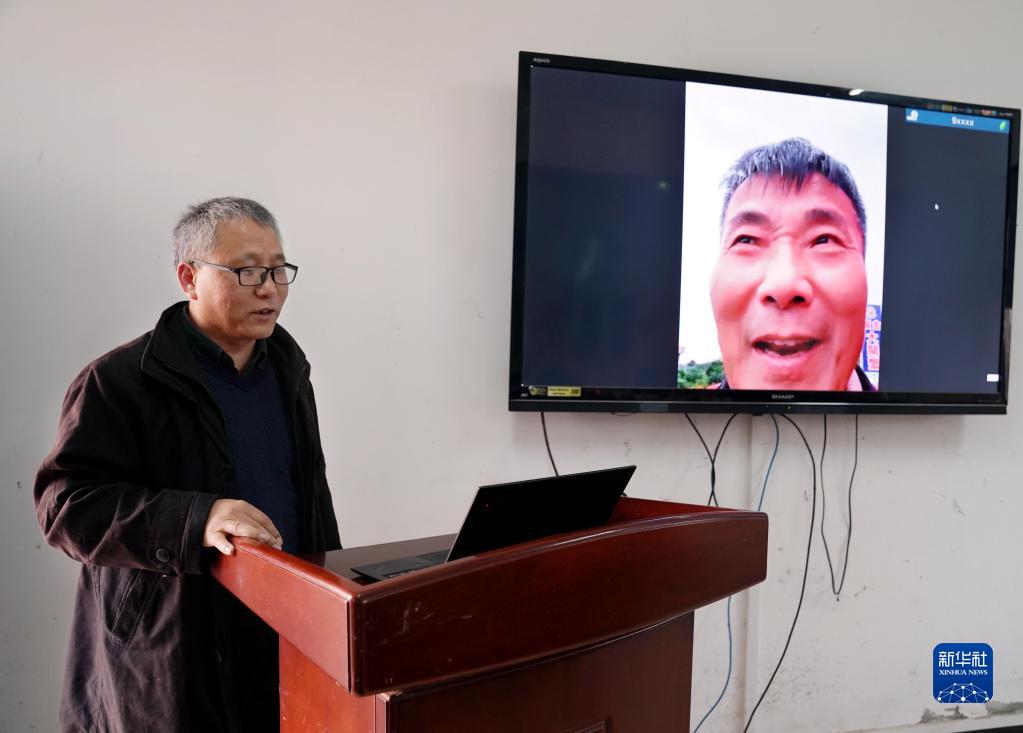 上海海洋大學(xué)成永旭教授連線苗栗縣蟹農(nóng)代表,了解今年的銷售情況(11月25日攝)。新華社記者 劉穎 攝