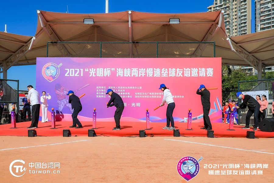 中國(guó)臺(tái)灣網(wǎng)12月4日訊 4日上午,2021“光明杯”海峽兩岸慢速壘球友誼邀請(qǐng)賽在深圳市光明區(qū)樓村“三月風(fēng)”壘球場(chǎng)隆重開幕。深圳市委臺(tái)辦主任鄭崇陽,光明區(qū)委書記、區(qū)長(zhǎng)蔡穎,光明區(qū)委常委覃敬騰,光明區(qū)委常委、宣傳部部長(zhǎng)吳志偉,深圳市臺(tái)商協(xié)會(huì)會(huì)長(zhǎng)陳忠和,深圳市光明區(qū)臺(tái)商聯(lián)誼會(huì)會(huì)長(zhǎng)鄭國(guó)民出席活動(dòng)并共同為比賽開球。