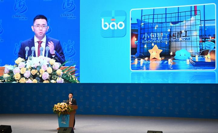 小包智工聯(lián)合創(chuàng)始人徐韜在第十三屆海峽論壇大會上發(fā)言。新華社記者 林善傳 攝