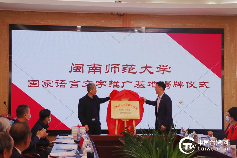 會上舉行了閩南師范大學(xué)國家語言文字推廣基地揭牌儀式。李順興、彭杰共同為基地揭牌。