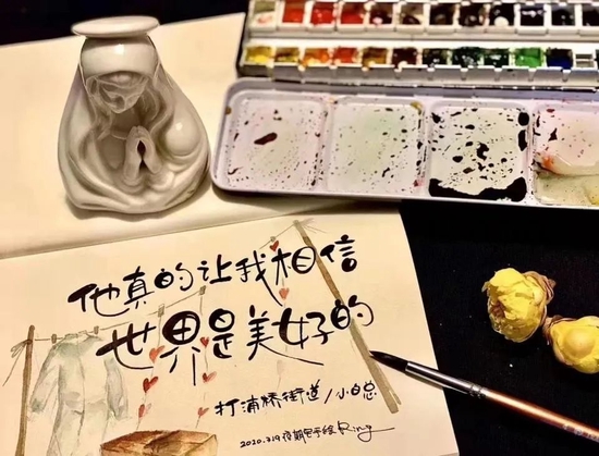 目前,簡(jiǎn)美霜已創(chuàng)作了幾十幅手繪作品。她說:“‘疫期宅手繪’不是單純寫文字,也不只是繪畫,我想通過這樣的表達(dá),讓那些發(fā)生在平凡生活中觸動(dòng)人心的真實(shí)故事被更多人看見,持續(xù)傳遞故事背后的美好情感!