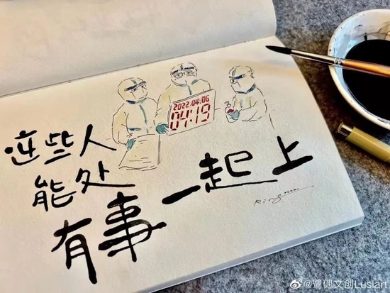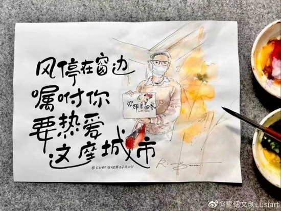 上海本輪疫情中,周俊一直和同伴堅(jiān)守在抗疫一線。大家的鼓勵(lì)和支持,讓周俊非常感動(dòng),她在朋友圈曬出了2020年的這幅宅手繪作品。