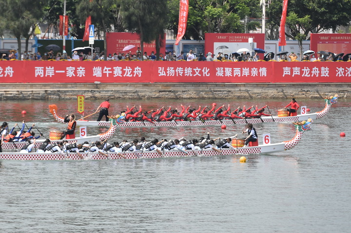 新華社廈門(mén)6月4日電 題:同“舟”共濟(jì) 開(kāi)創(chuàng)未來(lái)——記“龍騰虎躍”2022海峽兩岸龍舟賽