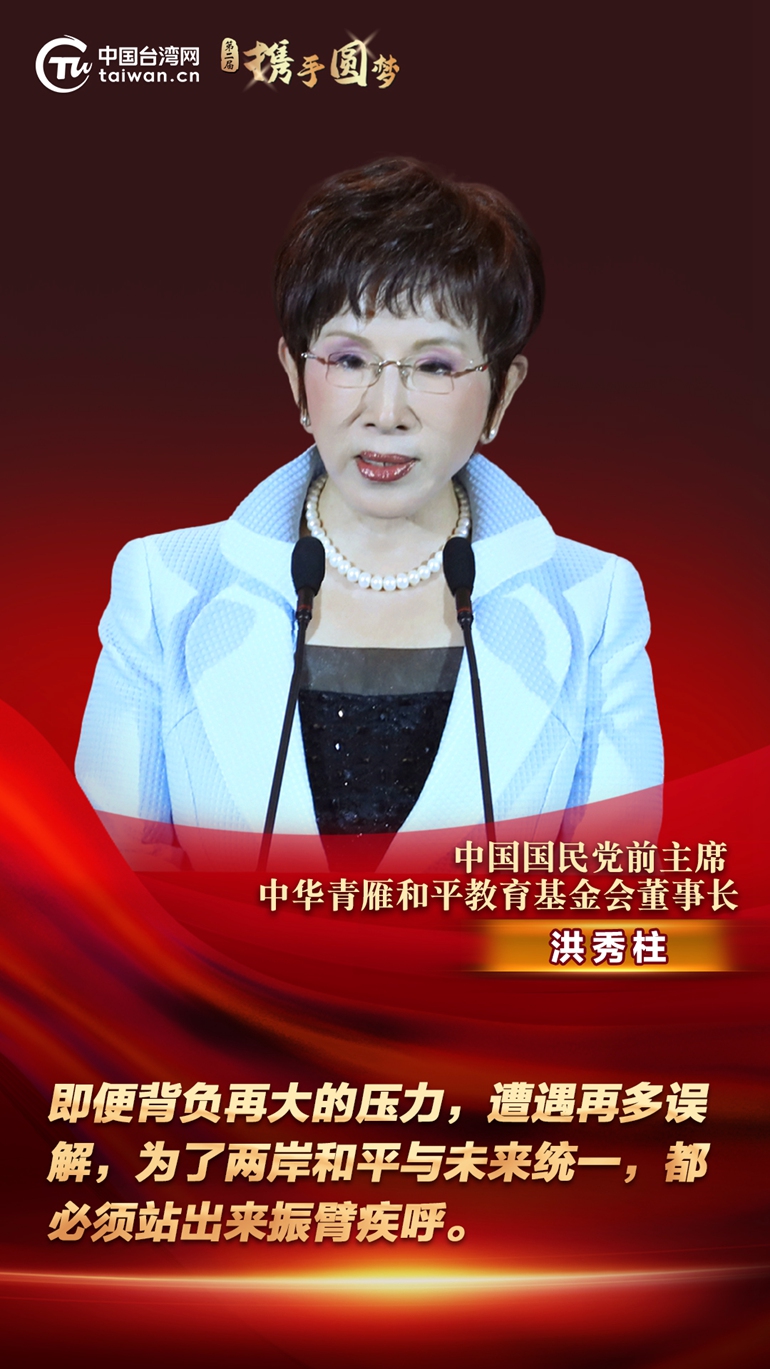 第二屆“攜手圓夢(mèng)——兩岸同胞交流研討活動(dòng)”7日在北京開幕。中國(guó)國(guó)民黨前主席、中華青雁和平教育基金會(huì)董事長(zhǎng)洪秀柱在致辭時(shí)表示,即便背負(fù)再大的壓力,遭遇再多誤解,為了兩岸和平與未來統(tǒng)一,都必須站出來振臂疾呼。