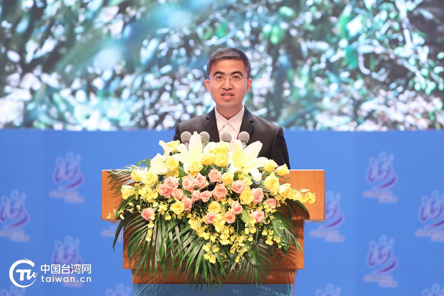 臺(tái)灣青年、四川涼山州冕寧元升農(nóng)業(yè)科技有限公司副總經(jīng)理林書任在論壇大會(huì)上發(fā)言。(中國臺(tái)灣網(wǎng) 尹賽楠 攝)