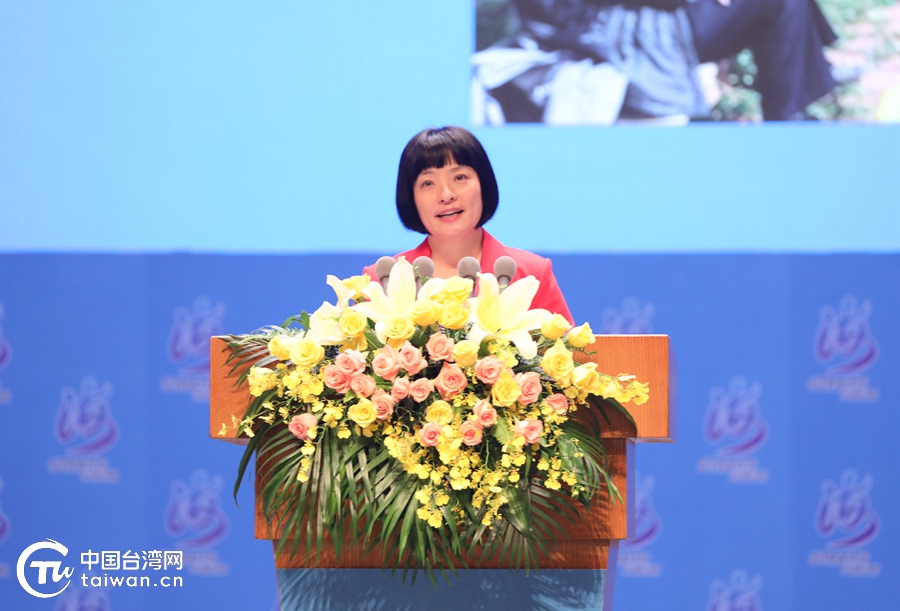 臺(tái)灣青年、廈門市海滄區(qū)海峽城鄉(xiāng)發(fā)展基金會(huì)理事長李佩珍在論壇大會(huì)上發(fā)言。(中國臺(tái)灣網(wǎng) 尹賽楠 攝)