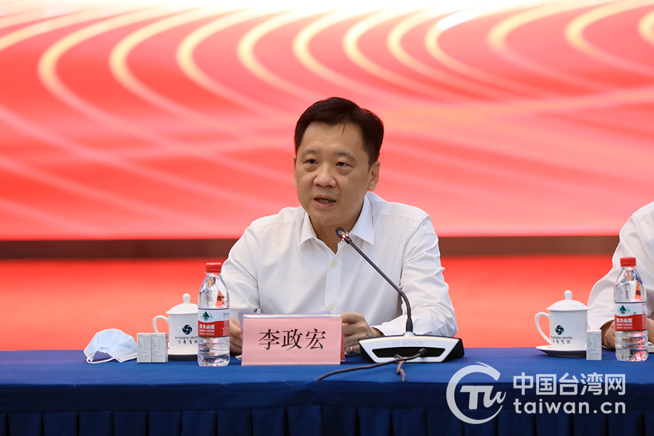 全國臺企聯(lián)會長李政宏在“大陸臺企這十年”座談會發(fā)言。(中國臺灣網(wǎng) 尹賽楠 攝)