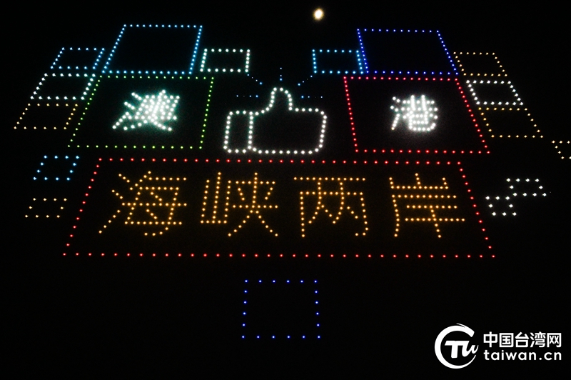 無人機(jī)隊(duì)擺出“海峽兩岸”字形。(中國臺(tái)灣網(wǎng) 發(fā))
