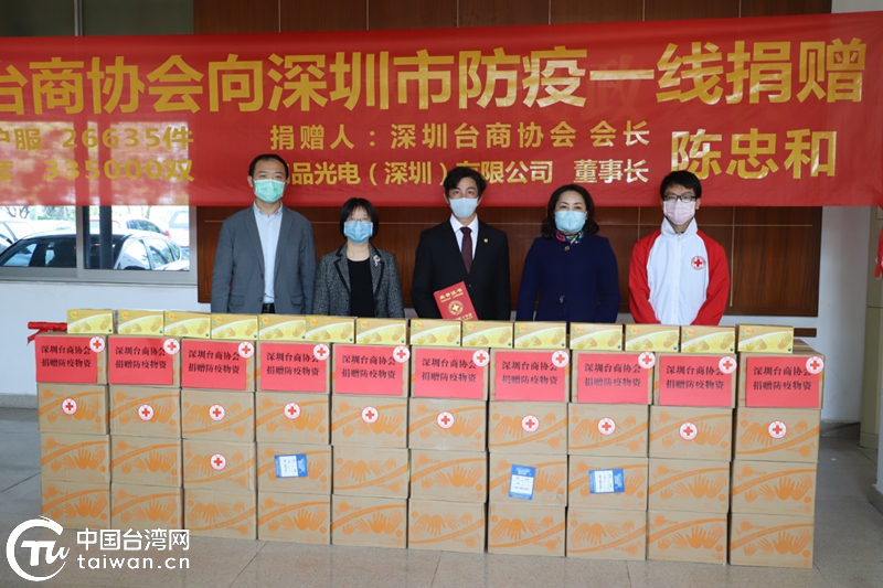 2020年,深圳臺商協(xié)會會長向深圳抗疫一線捐贈防疫物資。(中國臺灣網(wǎng)發(fā))