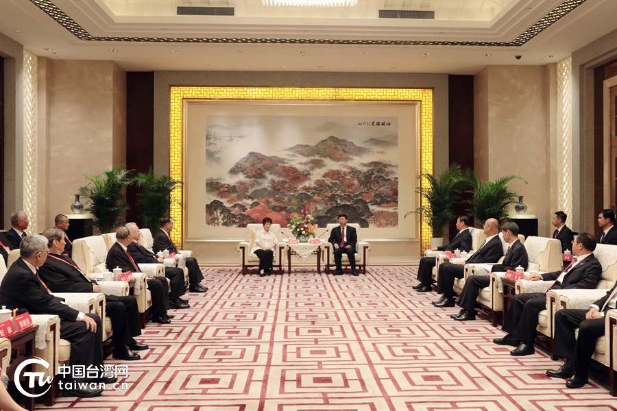 中共中央臺(tái)辦、國務(wù)院臺(tái)辦主任宋濤7月24日在南京會(huì)見中國國民黨前主席、中華青雁和平教育基金會(huì)董事長洪秀柱等參加第三屆“攜手圓夢(mèng)——兩岸同胞交流研討活動(dòng)”的臺(tái)灣嘉賓代表。(中國臺(tái)灣網(wǎng) 尹賽楠 攝)