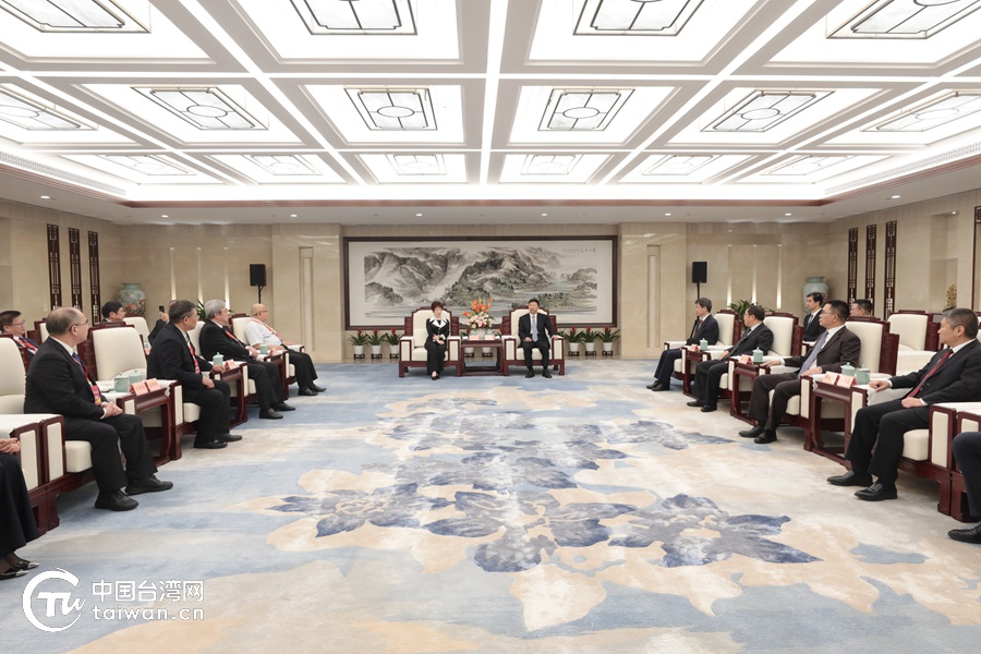 中共中央臺辦、國務(wù)院臺辦主任宋濤9月15日在杭州會見前來出席第六屆海峽兩岸青年發(fā)展論壇的中國國民黨前主席、中華青雁和平教育基金會董事長洪秀柱一行。(中國臺灣網(wǎng) 尹賽楠 攝)