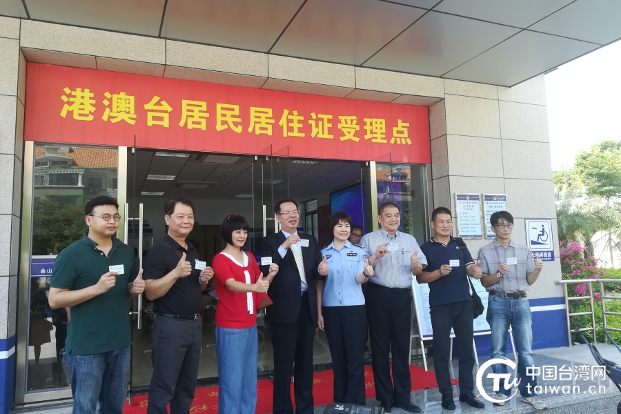 成功申領(lǐng)中華人民共和國(guó)臺(tái)灣居民居住證的臺(tái)胞于廈門市合影留念,《港澳臺(tái)居民居住證申領(lǐng)辦法》于2018年9月1日正式實(shí)施。(中國(guó)臺(tái)灣網(wǎng) 發(fā))