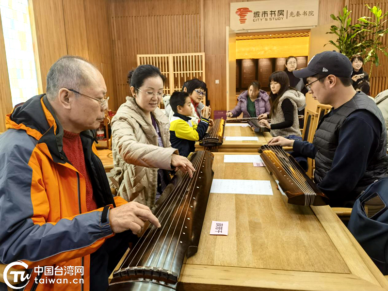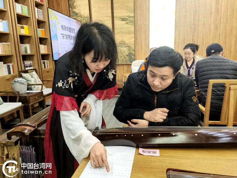 臺胞臺屬現(xiàn)場學(xué)習(xí)古琴技法。(中國臺灣網(wǎng)發(fā))