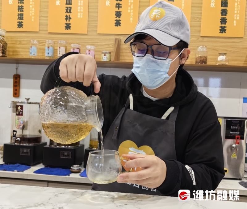 鄒季廷在做養(yǎng)生茶飲。