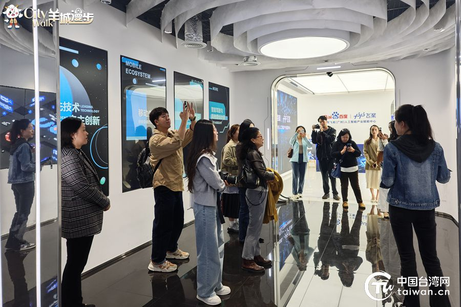 兩岸暨港澳媒體參訪團(tuán)到百度飛槳(廣州)人工智能產(chǎn)業(yè)賦能中心參觀交流。(中國(guó)臺(tái)灣網(wǎng)記者 張亞靜 攝)