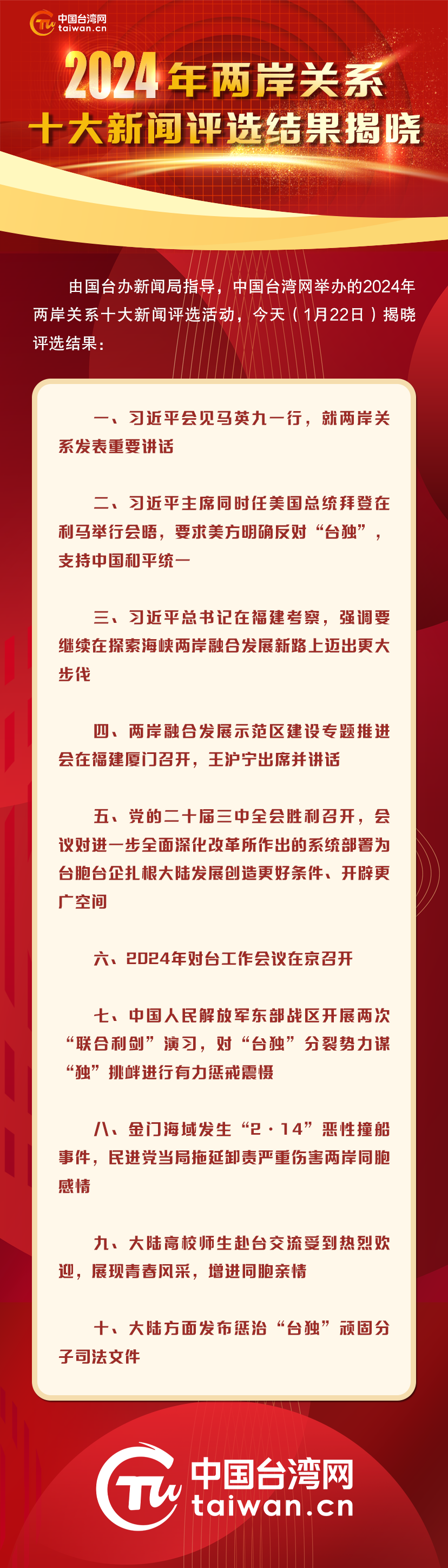 2024年兩岸關(guān)系十大新聞評(píng)選結(jié)果揭曉(圖解)
