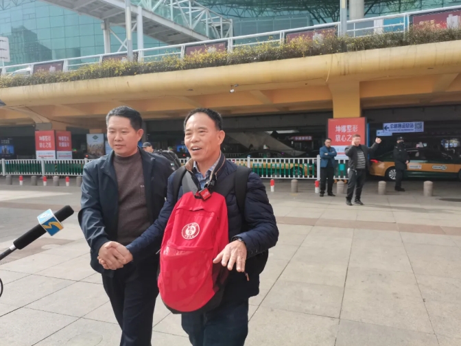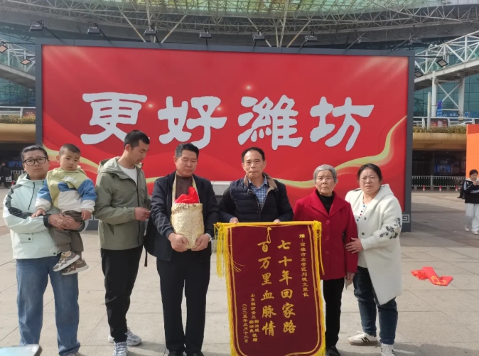 3月12日,在濰坊火車站出站口,50歲的濰坊市民鞠治良雙手緊握于身前,表情凝重,望著一波又一波出站的旅客。當(dāng)他在人群中看到了期盼已久的人,眼睛里頓時有了光,向?qū)Ψ绞箘艙]動著手。順著鞠治良的目光望去,被稱為老兵“靈魂擺渡人”的劉德文迎面而來,這次他帶著鞠治良爺爺鞠榮國的骨灰跨越海峽,從臺灣送回到了濰坊。