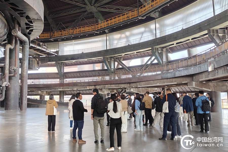 與會嘉賓、獲獎師生代表及媒體記者參觀首鋼園區(qū)。(中國臺灣網(wǎng)記者 張亞靜 攝)