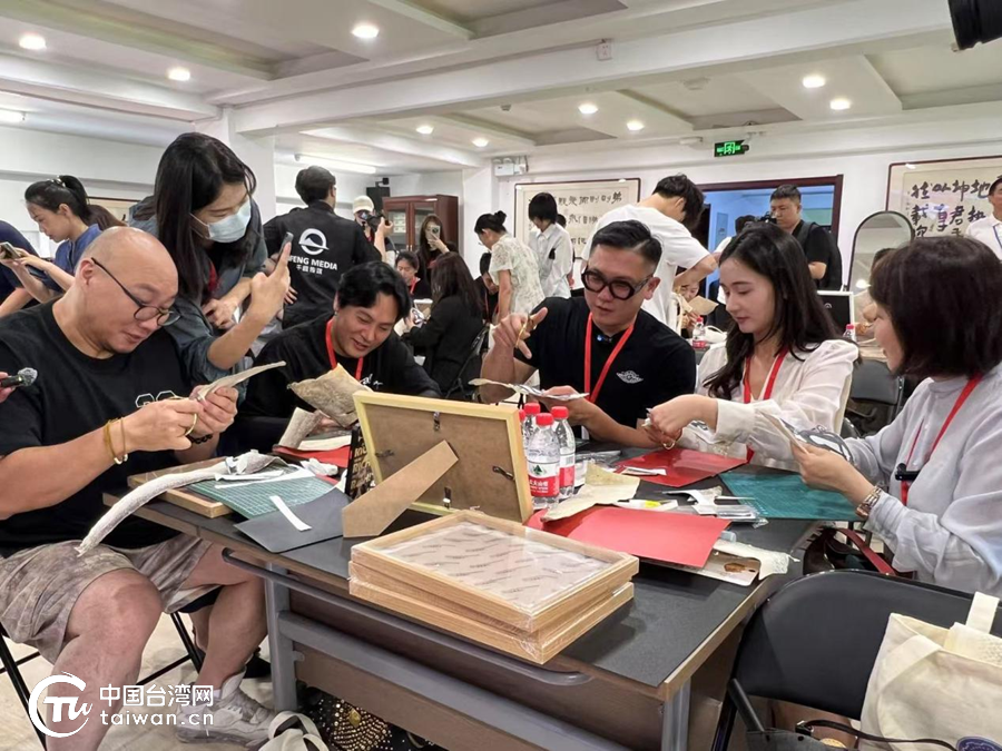 兩岸媒體人在黑龍江省民族博物館內(nèi)體驗魚皮畫創(chuàng)作。(中國臺灣網(wǎng)記者 劉琳 攝)
