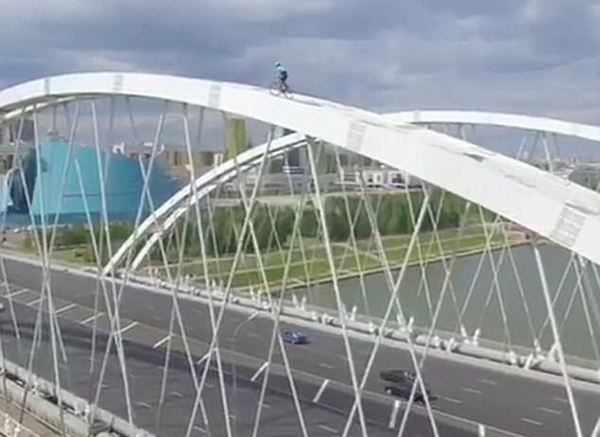 據(jù)英國(guó)《每日郵報(bào)》8月15日?qǐng)?bào)道,近日,37歲的意大利自行車手維托里奧(Vittorio Brumotti)在哈薩克斯坦一年一度的自行車博覽會(huì)上憑借其驚艷的騎車技巧騎上了阿斯塔納一座大橋的橋拱,創(chuàng)造了一項(xiàng)新的吉尼斯世界紀(jì)錄。