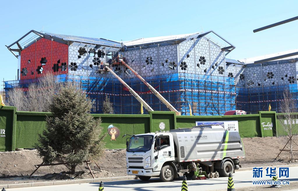 3月27日,工人在張家口市崇禮區(qū)太子城冰雪小鎮(zhèn)施工。新華社發(fā)(武殿森 攝)