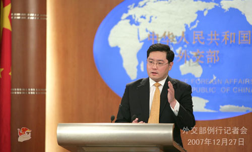 2007年12月27日,外交部發(fā)言人秦剛舉行例行記者會(huì),就日本首相福田訪華及六方會(huì)談等問題答記者問。