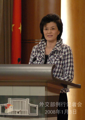 2008年1月3日下午,外交部發(fā)言人姜瑜舉行例行記者會(huì),就六方會(huì)談、印度總理辛格訪華、巴基斯坦推遲大選、楊潔篪外長(zhǎng)訪非等問(wèn)題回答記者提問(wèn)。