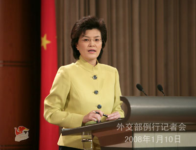 2008年1月10日,外交部發(fā)言人姜瑜舉行例行記者會,就伊核問題、六方會談、印度總理辛格訪華、韓國利川爆炸事件等答記者問。