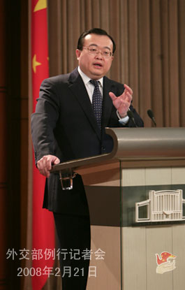 2008年2月21日,外交部發(fā)言人劉建超主持例行記者會(huì),就六方會(huì)談、中日戰(zhàn)略對(duì)話、美導(dǎo)彈擊毀失控衛(wèi)星、北京奧運(yùn)會(huì)等問(wèn)題回答了記者提問(wèn)。