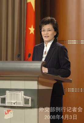 2008年4月3日下午,外交部發(fā)言人姜瑜舉行例行記者會(huì),就北京奧運(yùn)會(huì)及火炬?zhèn)鬟f、穆沙拉夫總統(tǒng)訪華、伊朗核等問(wèn)題答問(wèn)。