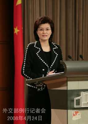 2008年4月24日下午,外交部發(fā)言人姜瑜舉行例行記者會,就奧運火炬?zhèn)鬟f、歐洲議會通過涉華決議等回答了記者提問。