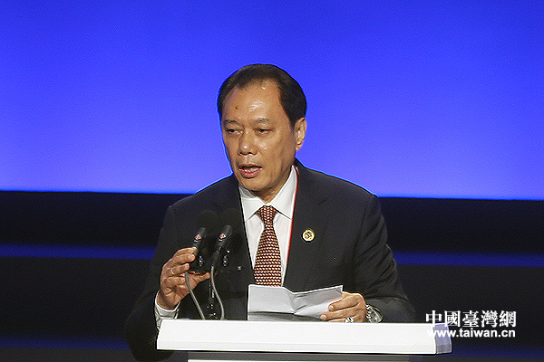 全國(guó)臺(tái)企聯(lián)常務(wù)副會(huì)長(zhǎng)、深圳市臺(tái)商協(xié)會(huì)會(huì)長(zhǎng)、深圳市地天合泰貿(mào)易有限公司董事長(zhǎng)陳合泰致辭。(中國(guó)臺(tái)灣網(wǎng) 王思羽 攝)