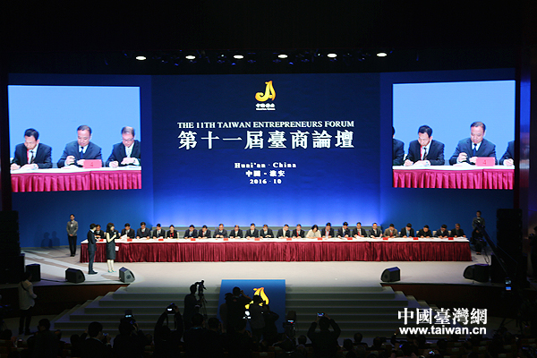 第十一屆臺(tái)商論壇簽約儀式。(中國(guó)臺(tái)灣網(wǎng) 王思羽 攝)