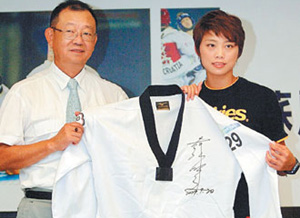 人物:蘇麗文義賣北京奧運會戰(zhàn)袍 募得65萬濟助臺災(zāi)區(qū)(圖) |