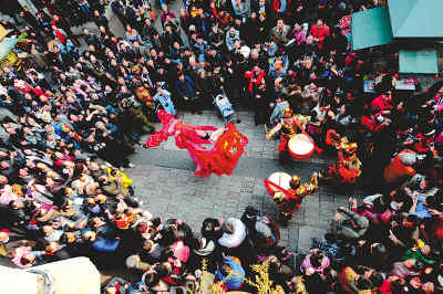 2月8日,杭州河坊街年俗活動(dòng)再現(xiàn)高潮,民間藝人沿南宋御街、河坊街,為市民和游客展示了精彩的舞獅、鑼鼓、高蹺、頂缸、耍刀等絕活表演,營(yíng)造了“玉兔呈祥·喜迎春”的濃郁年俗文化氛圍。里爾攝(人民圖片)