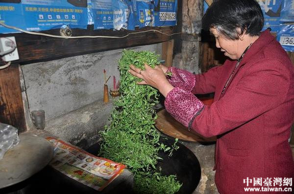 古民居的廚房內(nèi),正在“炒茶”的阿姨。(中國臺灣網(wǎng)記者 劉瑩 攝)