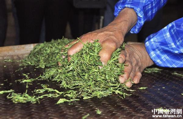 茶舍里,師傅們正在將采摘的鮮葉用雙手進(jìn)行反復(fù)揉捻。(中國臺灣網(wǎng)記者 劉瑩 攝)