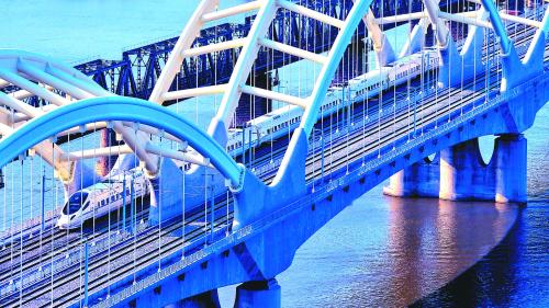 中國最北的高寒高鐵——哈齊高鐵駛過松花江特大橋。黑龍江日報(bào)記者陳寶林?jǐn)z