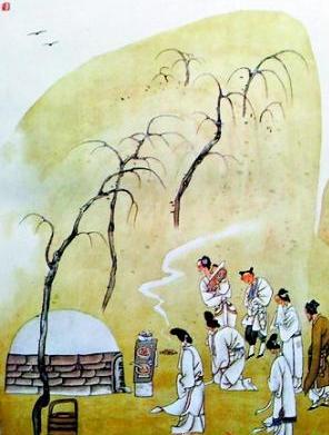 清明掃墓,謂之對(duì)祖先的“思時(shí)之敬”。其習(xí)俗由來已久。明《帝京景物略》載:“三月清明日,男女掃墓,擔(dān)提尊榼,轎馬后掛楮錠,粲粲然滿道也。拜者、酹者、哭者、為墓除草添土者,焚楮錠次,以紙錢置墳頭。望中無紙錢,則孤墳矣?蘖T,不歸也,趨芳樹,擇園圃,列坐盡醉。”其實(shí),掃墓在秦以前就有了,但不一定是在清明之際,清明掃墓則是秦以后的事。到唐朝才開始盛行。《清通禮》云:“歲,寒食及霜降節(jié),拜掃壙塋,屆期素服詣墓,具酒饌及芟剪草木之器,周胝封樹,剪除荊草,故稱掃墓。”并相傳至今!