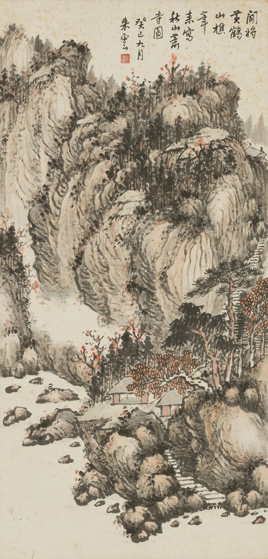 秋山蕭寺圖朱龍庵