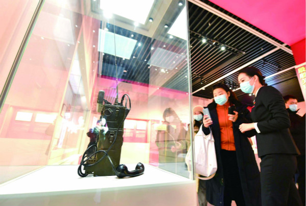 日前,“紅色電波中的領(lǐng)袖風(fēng)范——毛澤東同志香山時期發(fā)布電報手稿”專題展覽在北京香山革命紀(jì)念館舉行。圖為觀眾在觀看拍攝展出的電臺。(圖片來源:人民視覺)