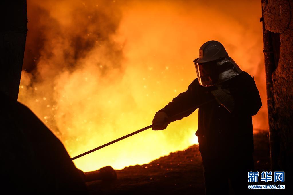 工人在鞍鋼集團(tuán)鞍鋼股份煉鐵總廠三號高爐忙碌(4月20日攝)。新華社記者 潘昱龍 攝