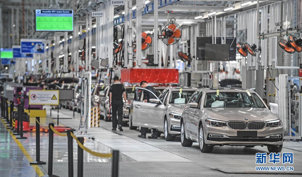 在沈陽華晨寶馬大東工廠,工人在生產(chǎn)線上裝配汽車(2018年5月23日攝)。新華社記者 潘昱龍 攝