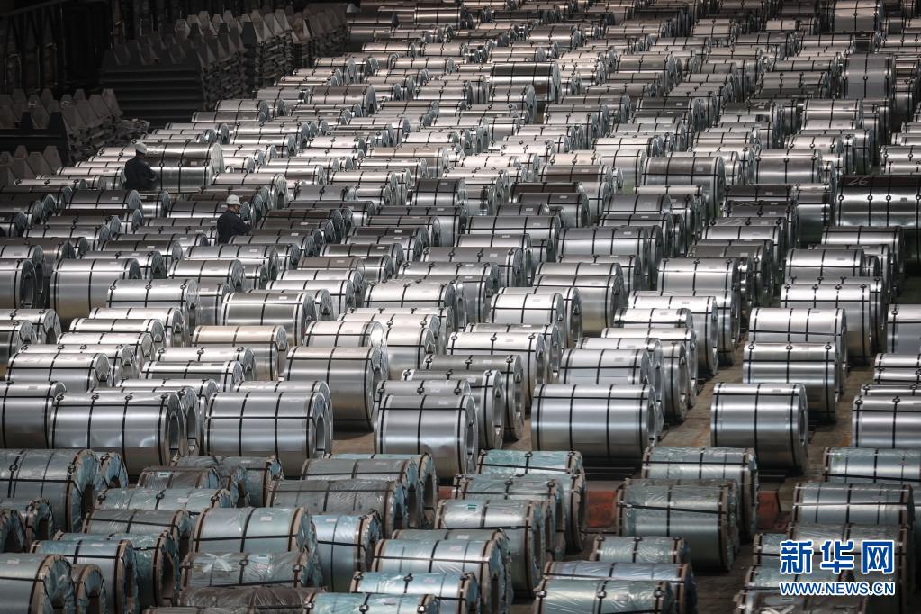 工人在鞍鋼集團(tuán)鞍鋼股份冷軋廠四、五號鍍鋅線鍍鋅板卷成品區(qū)檢查產(chǎn)品(4月20日攝)。新華社記者 潘昱龍 攝