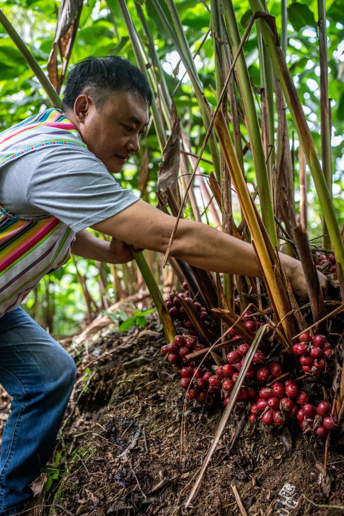在云南省貢山獨(dú)龍族怒族自治縣獨(dú)龍江鄉(xiāng)巴坡村,王世榮在草果地除草(2020年10月27日)。新華社記者胡超 攝