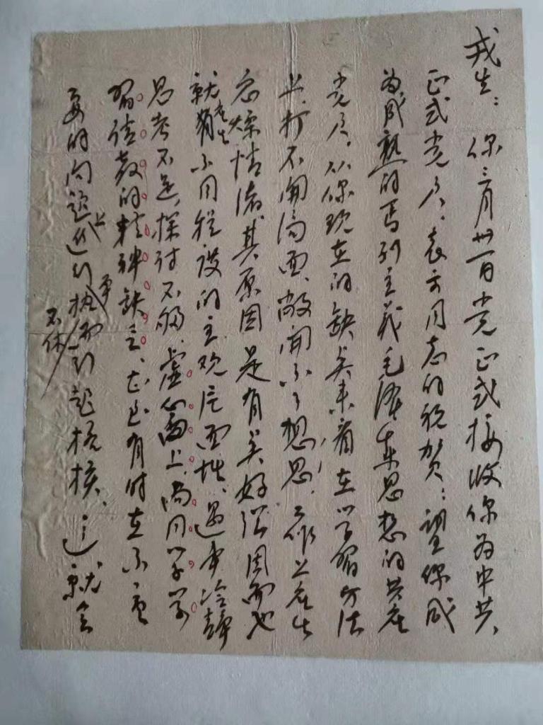 “戎生,你這幾年來,學(xué)習(xí)進(jìn)步一定很好。我們天天在這里希望你進(jìn)步……我們身體很好,工作也很順利,不要掛念。祝你和你弟弟身體好,并祝進(jìn)步!”