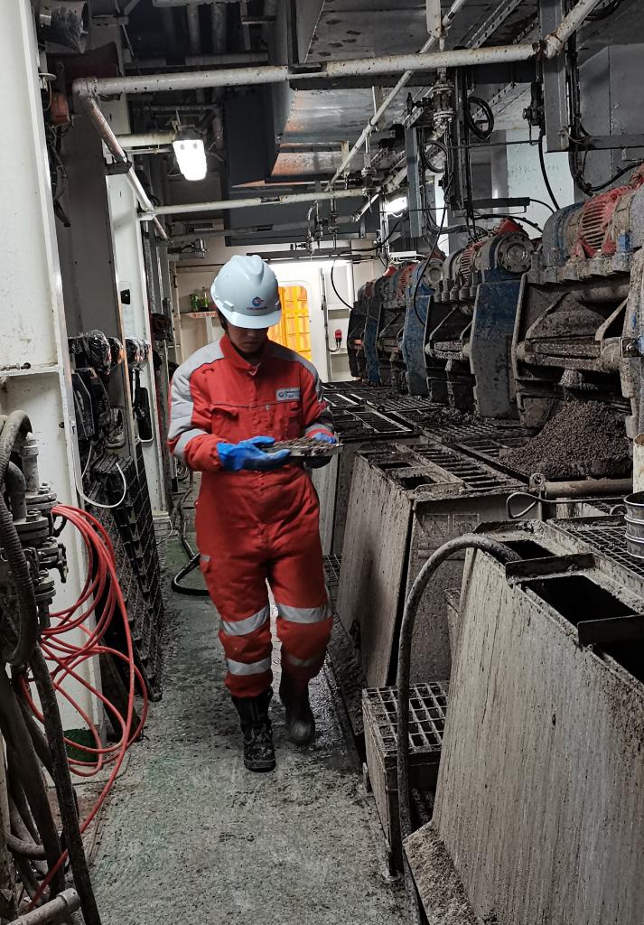 中國海油員工羅松巴登正在采集底層巖石樣本。(受訪者供圖)