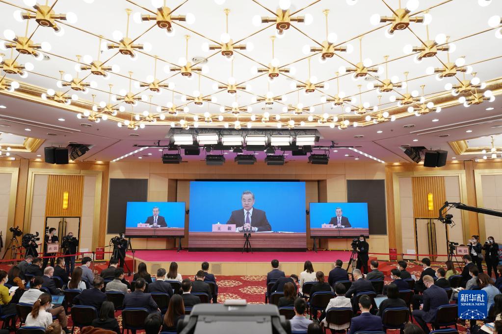 3月7日,十三屆全國人大五次會議在北京人民大會堂舉行視頻記者會,國務委員兼外交部長王毅就中國外交政策和對外關系回答中外記者提問。新華社記者 陳鐘昊 攝
