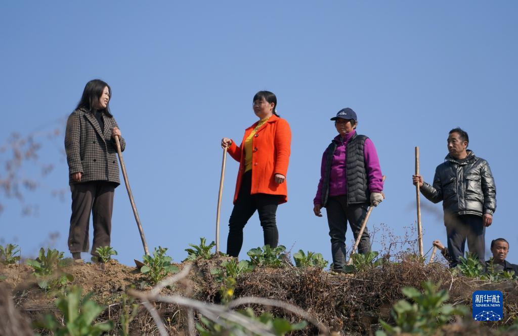 2月24日,漢濱區(qū)縣河鎮(zhèn)毛壩村黨支部書記兼村委會(huì)主任成英娟(左一)與村民一起在油菜地里干活。
