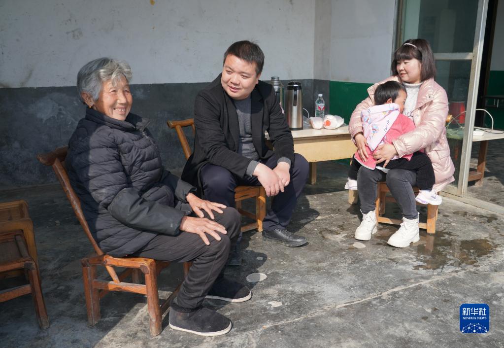 2月25日,漢濱區(qū)建民街道青春村支部副書記唐振(左二)在村民劉玉秀(左一)家中走訪。
